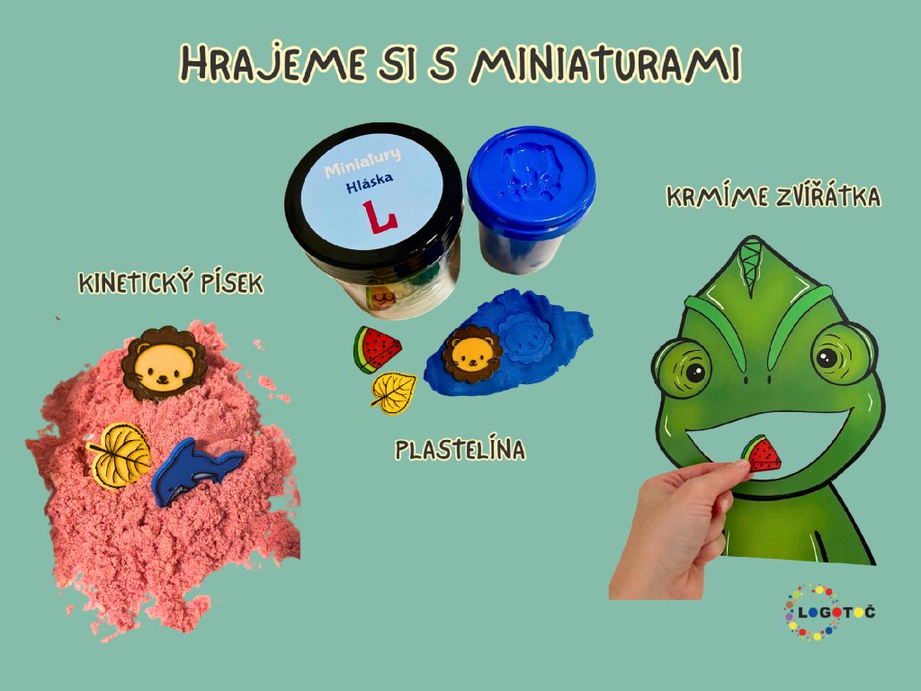 Miniatury jsou vhodné pro upevňování správné výslovnosti hlásky L ve slovech, větách i příbězích. Děti je mohou obtiskovat do plastelíny, hledat v kinetickém písku (či jiných materiálech) nebo s nimi krmit zvířátka.
