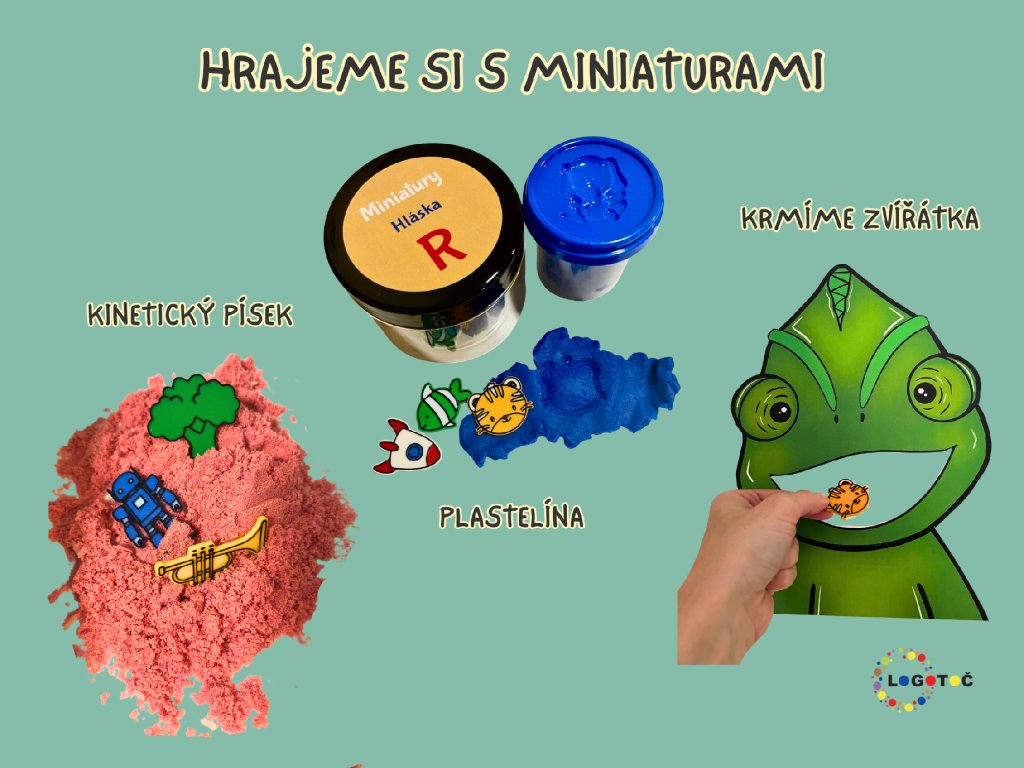 Miniatury jsou vhodné pro upevňování správné výslovnosti hlásky R ve slovech, větách i příbězích. Děti je mohou obtiskovat do plastelíny, hledat v kinetickém písku (či jiných materiálech) nebo s nimi krmit zvířátka.