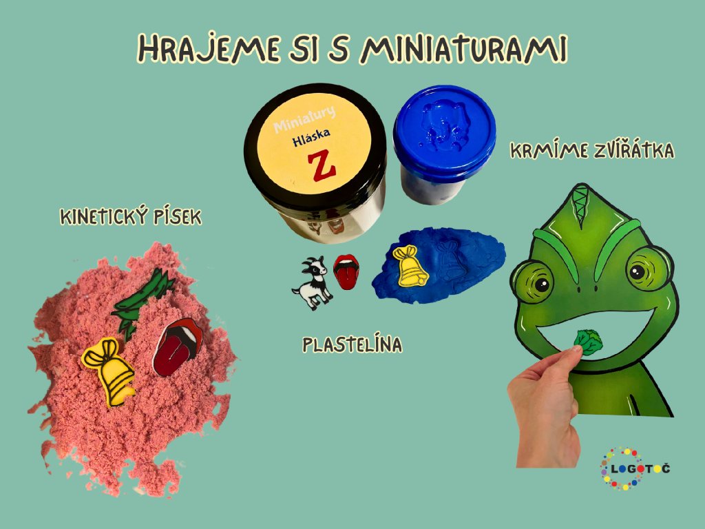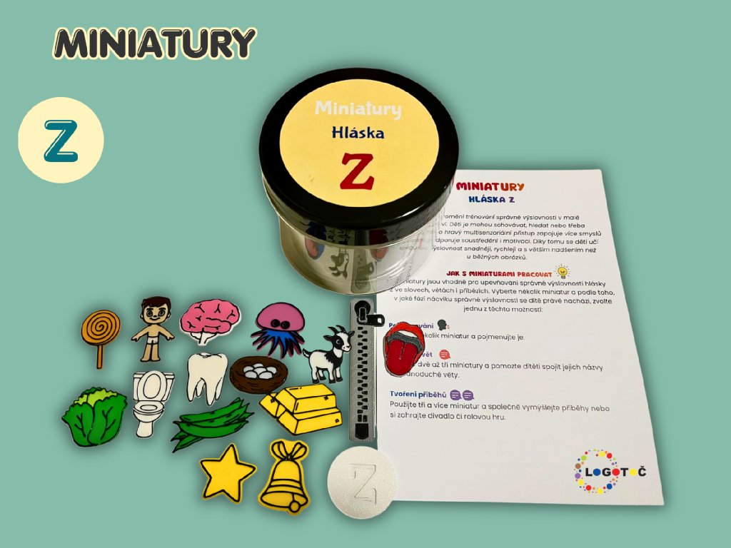 Miniatury jsou vhodné pro upevňování správné výslovnosti hlásky Z ve slovech, větách i příbězích. Děti je mohou obtiskovat do plastelíny, hledat v kinetickém písku (či jiných materiálech) nebo s nimi krmit zvířátka.