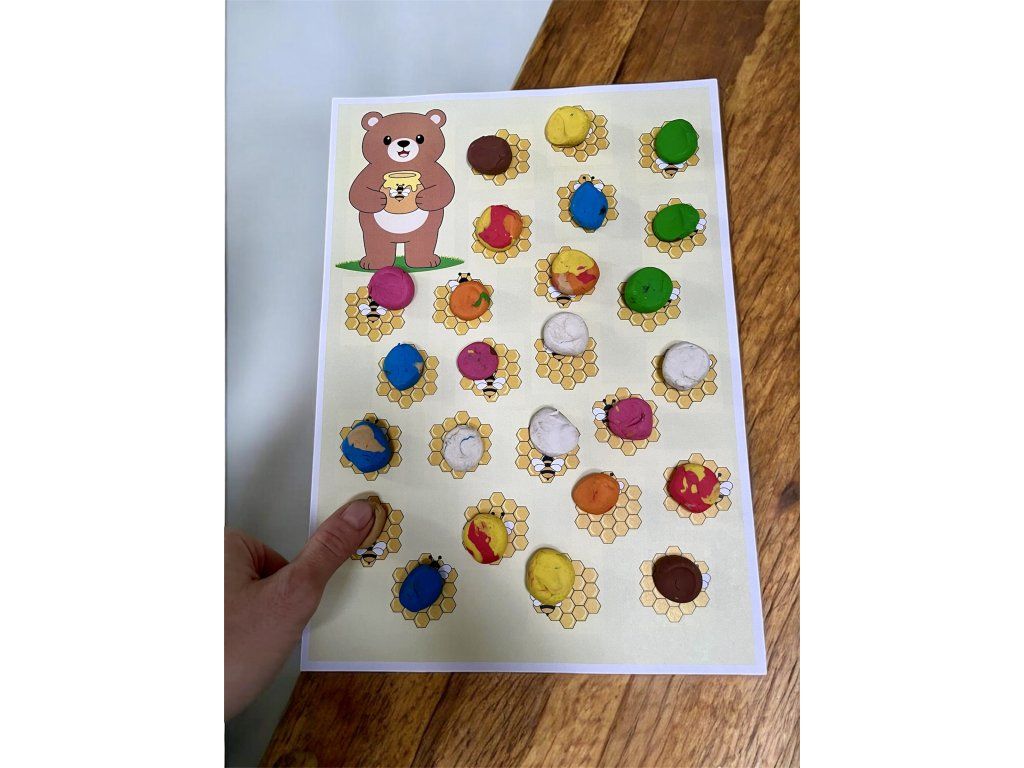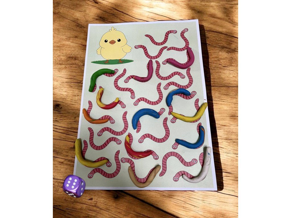 Dítě hodí kostkou, vybere si obrázek s procvičovanou hláskou a pojmenuje ho tolikrát, kolik padne. Za každé opakování přidá kousek plastelíny na potravu pro zvířátko. Pokračuje s dalšími obrázky, dokud není zvířátko nakrmené. Poté kuličky z plastelíny rozmačká podle hodu kostkou. Další tipy najdete v návodu.