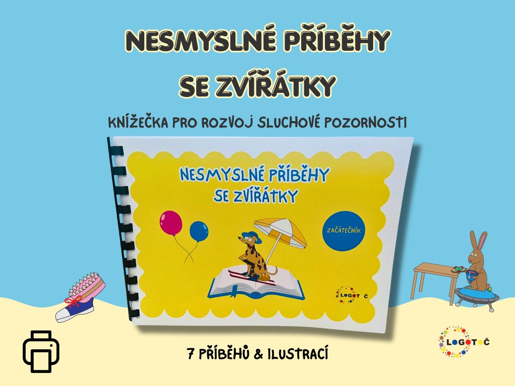 Krátké nesmyslné příběhy s ilustracemi, ve kterých děti hledají nesmysly a trénují sluchovou pozornost.