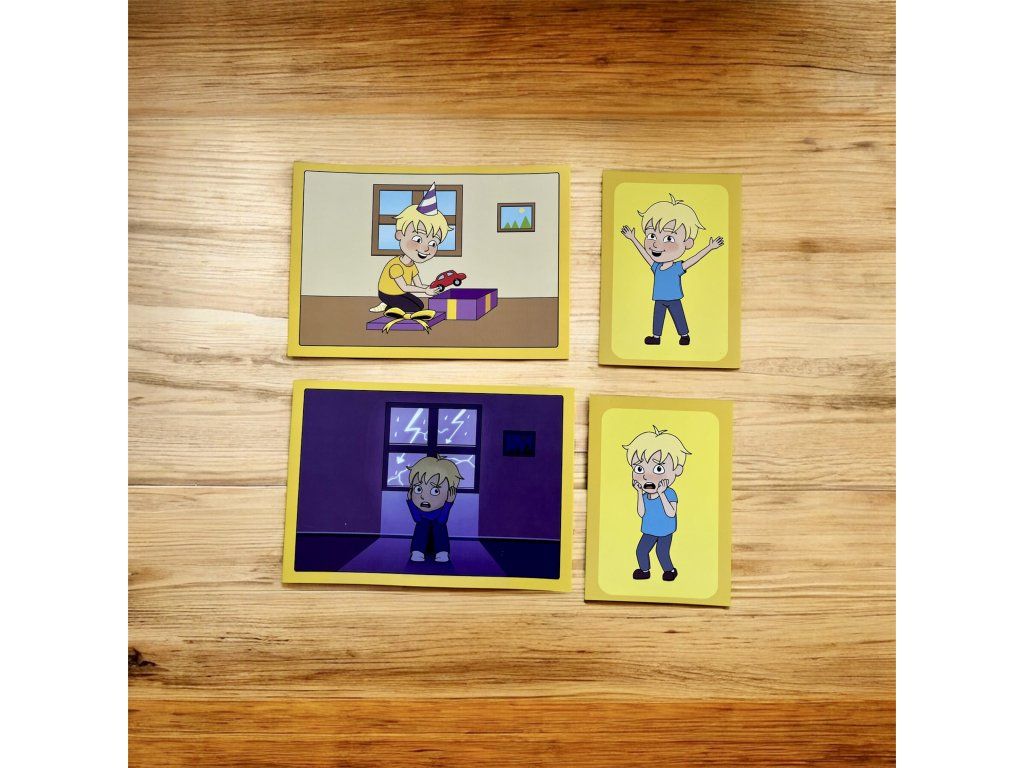 - 5 karet s postavou chlapce, které znázorňují základní emoce,